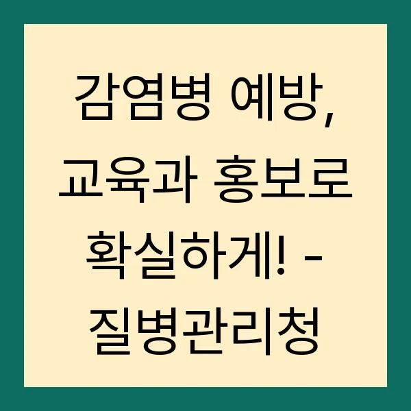 질병관리청은 감염병 예방을 위한 교육 및 홍보 활동에 대한 자세한 정보를 제공하고 있습니다. 각 프로그램의 세부 내용, 참여 방법, 일정 등은 질병관리청 홈페이지(kdca.go.kr) 또는 관련 부서에 문의하시면 친절하게 안내받으실 수 있습니다. 감염병 예방, 함께하면 이겨낼 수 있습니다! 질병관리청이 여러분과 함께합니다!