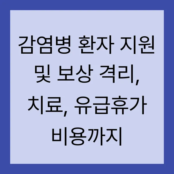 감염병 발생은 개인의 건강을 위협할 뿐만 아니라 사회경제적 활동에도 큰 타격을 입힙니다. 감염병 환자 지원 및 보상 정책은 공중보건 위기 상황에서 개인의 경제적 부담을 줄이고 , 적극적인 격리와 치료 참여를 유도 하여 감염병 확산 방지에 중요한 역할을 합니다. 이 글에서는 격리, 치료, 유급휴가 지원을 중심으로 감염병 환자를 위한 지원 및 보상 제도를 자세히 알아보겠습니다. 관련 키워드: 감염병, 환자 지원, 보상, 격리, 치료, 유급휴가, 생활지원비, 의료비 지원, 생계 지원, 가족 요양비.