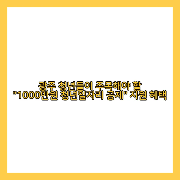광주 지역 청년들에게 큰 기회가 열리고 있습니다. 바로 "1000만원 청년일자리 공제" 지원 혜택인데요. 이는 청년들의 안정적인 일자리 확보와 지역 중소기업 발전을 위해 마련된 실로 놀라운 지원책입니다. :)