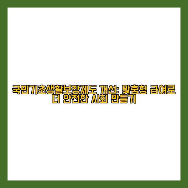 국민기초생활보장제도 개선: 맞춤형 급여로 더 안전한 사회 만들기