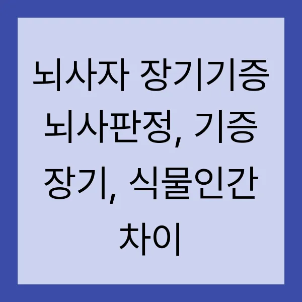 뇌사와 식물인간 상태는 엄연히 다른 질환이며, 장기 기증 가능 여부에서도 큰 차이를 보입니다. 뇌사는 뇌 전체의 기능이 완전히 정지된 상태이므로 장기 기증이 가능하지만, 식물인간 상태는 뇌간의 기능이 유지되므로 장기 기증이 불가능합니다.