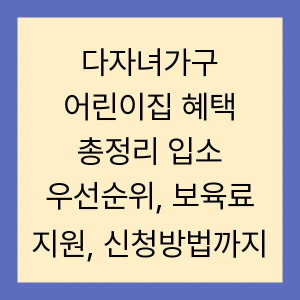 다자녀가구 어린이집 혜택 총정리 입소 우선순위, 보육료 지원, 신청방법까지