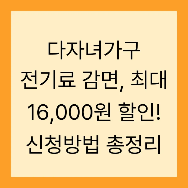 다자녀가구 전기료 감면, 최대 16,000원 할인! 신청방법 총정리