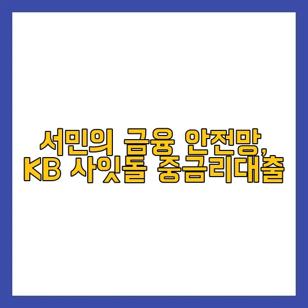 KB금융그룹이 선보인 'KB 사잇돌 중금리대출'은 서민들의 경제적 안정을 위한 든든한 금융 지원 상품입니다. 기존의 저금리대출과 고금리대출 사이에 놓인 서민들의 금융 사각지대를 해소하기 위해 마련된 이 상품은 다양한 금융 혜택을 제공하고 있죠.
