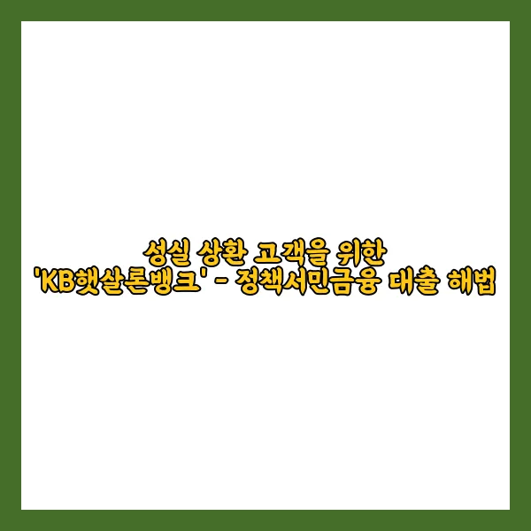 서민금융상품을 성실히 상환해온 고객들에게 새로운 기회가 찾아왔습니다! 금융 취약계층의 경제적 자립을 돕기 위해 KB금융그룹이 선보인 'KB햇살론뱅크'가 그 해답이 되어 드릴 것입니다. :)