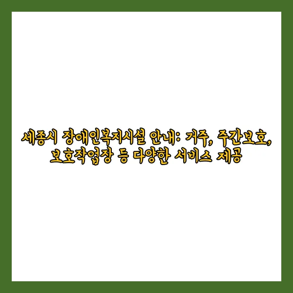 세종시 장애인복지시설 안내: 거주, 주간보호, 보호작업장 등 다양한 서비스 제공