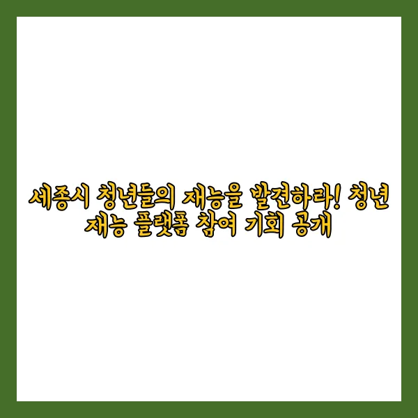 세종시 청년들의 재능을 발견하라! 청년 재능 플랫폼 참여 기회 공개