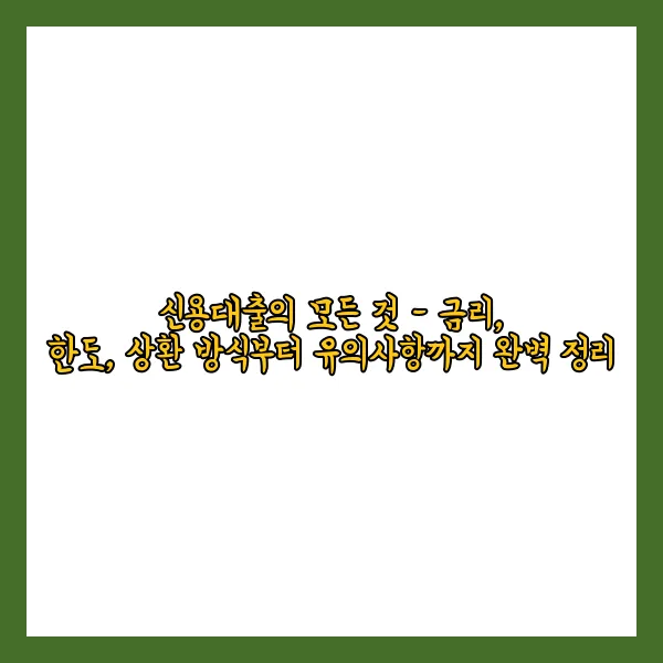 이렇듯 신용대출은 편리하지만 관리 소홀 시 부작용이 크므로, 본인의 상황을 정확히 진단하고 최적의 대출 상품을 선택하는 것이 핵심이에요. 또한 대출 기간 동안 성실한 상환을 통해 신용도를 지켜나가는 것이 필수적이죠 :)