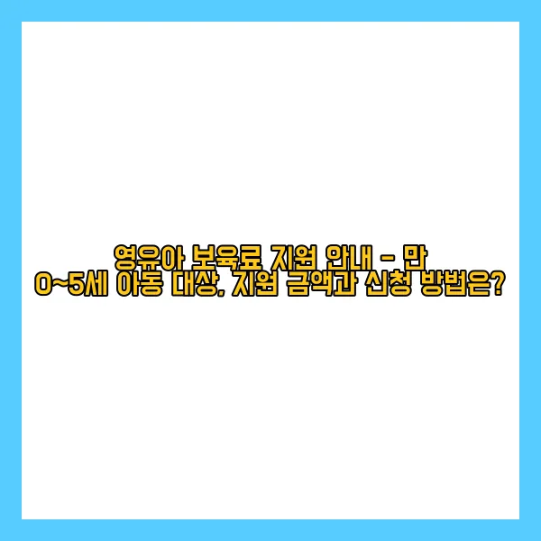 영유아 보육료 지원 안내 - 만 0~5세 아동 대상, 지원 금액과 신청 방법은?