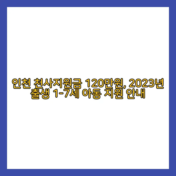 안녕하세요! 인천광역시 주민 여러분. 오늘은 2023년에 출생한 1세~7세 아동을 위한 '천사지원금' 120만원 지원 정책에 대해 알아보겠습니다. 이 정책은 인천 지역 아동들의 건강한 성장과 발달을 위해 마련된 의미 있는 복지 제도입니다. 🙏