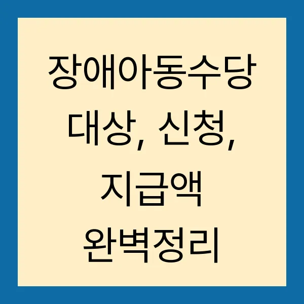 장애아동수당은 장애아동의 건강한 성장과 발달을 지원하는 소중한 제도입니다. 꼼꼼하게 알아보시고, 놓치지 말고 신청하셔서 혜택을 받으시길 바랍니다. 더 궁금한 점이 있다면, 주저하지 마시고 거주지 읍·면·동 주민센터에 문의해 주세요!