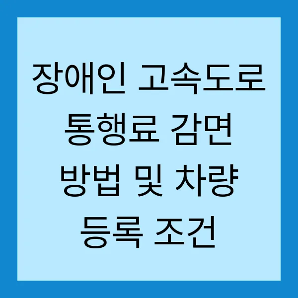 장애인 고속도로 통행료 감면 방법 및 차량 등록 조건 완벽 분석