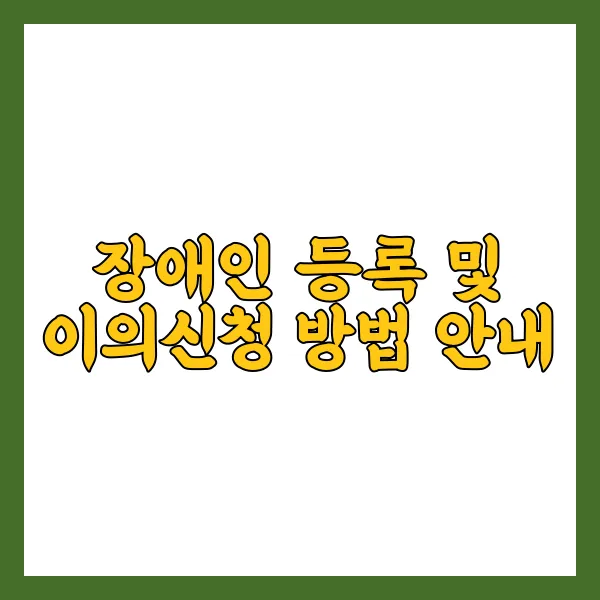장애인 등록과 이의신청은 장애인의 권리와 복지 혜택을 보장받기 위한 필수적인 과정입니다. 이 포스팅에서는 장애인 등록 절차와 이의신청 방법을 자세히 살펴보겠습니다.