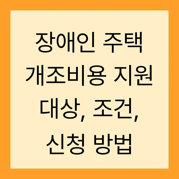 장애인 주택 개조비용 지원 대상, 조건, 신청 방법