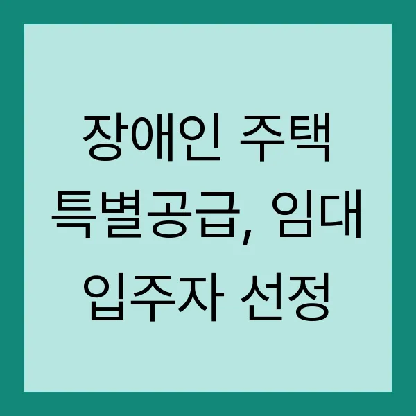 장애인 주택 특별공급 및 임대 입주자 선정 완벽 가이드