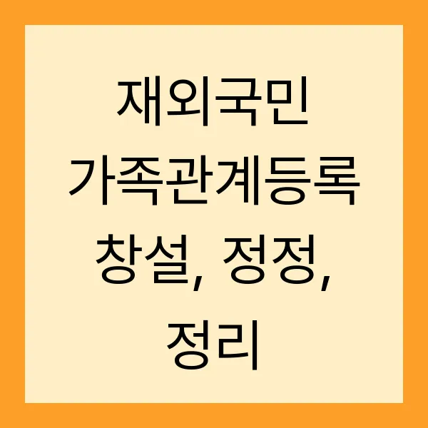 해외에 거주하시는 재외국민 여러분! 가족관계등록 관련 업무, 어떻게 처리해야 할지 막막하신가요? 2025년, 복잡하게만 느껴졌던 가족관계등록 창설, 정정, 정리 절차를 명쾌하게 정리해 드립니다. 이 포스팅 하나로 모든 궁금증을 해결하고, 간편하게 업무를 처리하세요!