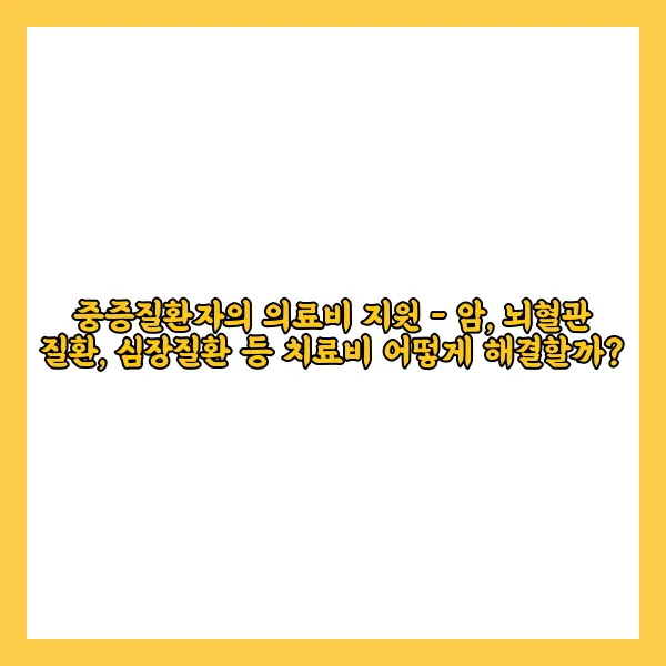 최근 우리 사회에서 암, 뇌혈관질환, 심장질환 등의 중증질환으로 고통받는 환자들이 늘어나고 있습니다. 이러한 질병들은 치료 과정에서 천문학적인 의료비가 발생하여 환자와 가족들에게 큰 부담을 주고 있죠. 하지만 다행히도 정부와 지방자치단체에서는 이들을 위한 다양한 의료비 지원 정책을 마련하고 있습니다.