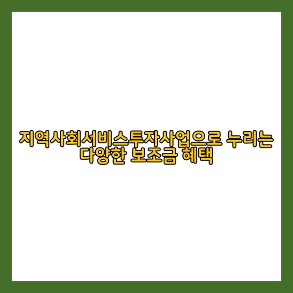 지역사회서비스투자사업은 지역 주민의 다양한 복지 수요에 부응하는 맞춤형 사회서비스를 제공하여 취약계층의 삶의 질 향상과 지역사회 발전을 도모하는 대표적인 정부 정책입니다. 특히, 이 사업은 다양한 보조금 혜택을 통해 저소득층과 장애인, 노인 등 소외계층의 복지 증진에 기여하고 있습니다.