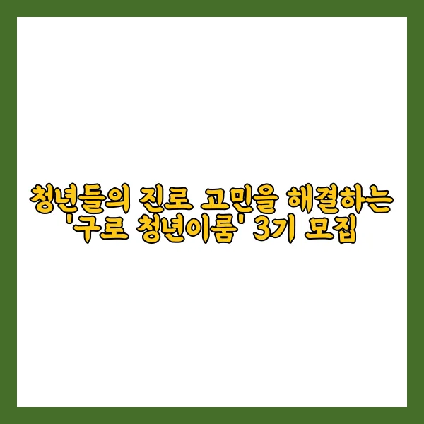청년들의 밝은 미래를 위한 새로운 기회가 열렸습니다! 서울특별시 구로구에서 주최하는 '구로 청년이룸' 3기 모집이 진행 중입니다. 이 프로그램은 취업 및 교육/직업훈련 이력이 없는 청년들의 진로 고민을 해결하고자 마련되었죠.