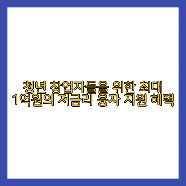 중소벤처기업부와 중소기업진흥공단에서는 만 39세 이하의 청년 창업자를 위해 최대 1억원 규모의 저금리 융자 지원 프로그램을 운영하고 있습니다. 이는 여러분의 창업 초기 자금 부담을 크게 낮춰 성공적인 창업을 달성할 수 있도록 돕는 알찬 기회라고 할 수 있겠죠. 💸