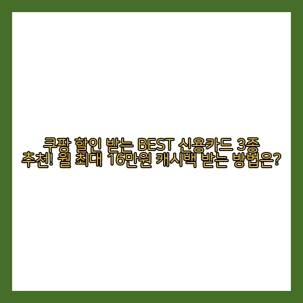 제가 전문적인 지식과 다양한 표현을 활용해 알차게 정리했으니, 실생활에서 큰 혜택을 누리실 수 있을 거예요. 쿠팡 할인 혜택 받는 3종 카드를 참고해서 가계 경제에 도움이 되길 바랍니다! 앞으로도 유용한 정보로 찾아뵐게요 :)